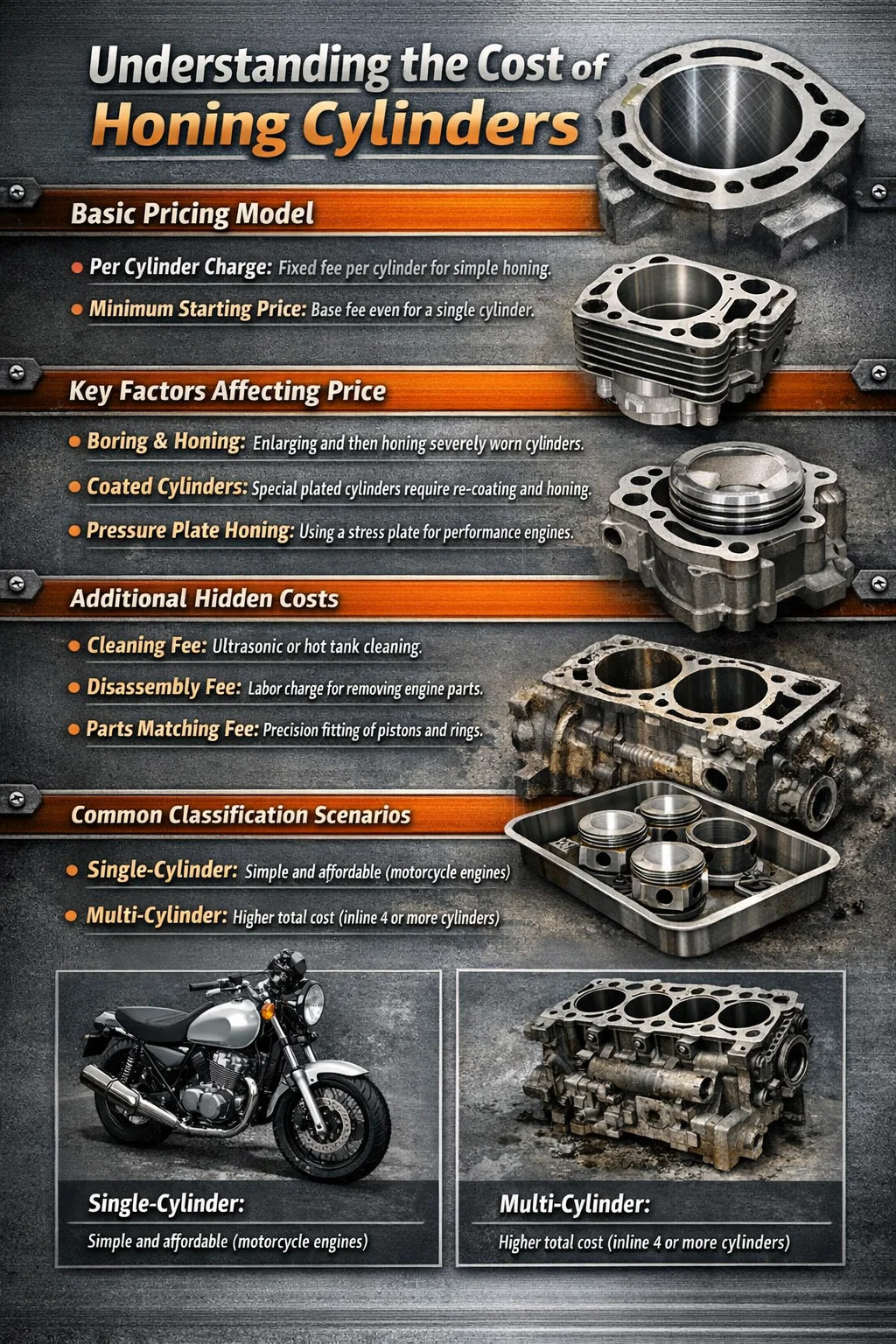 Táille díchóimeála agus cóimeála: Má thugann tú isteach bloc iomlán innill, nó fiú inneall nár díchumadh, beidh ar an siopa boltaí, bioráin agus ceangaltáin eile a bhaint, a ngearrfar táille bhreise orthu bunaithe ar am saothair. Táille Meaitseála Páirteanna: Má iarrann tú ar an gceardlann na loiní agus na fáinní loine nua a mheaitseáil duit, ag cinntiú imréitigh beachta, beidh an tseirbhís "meaitseáil beachtais" seo beagán níos costasaí.