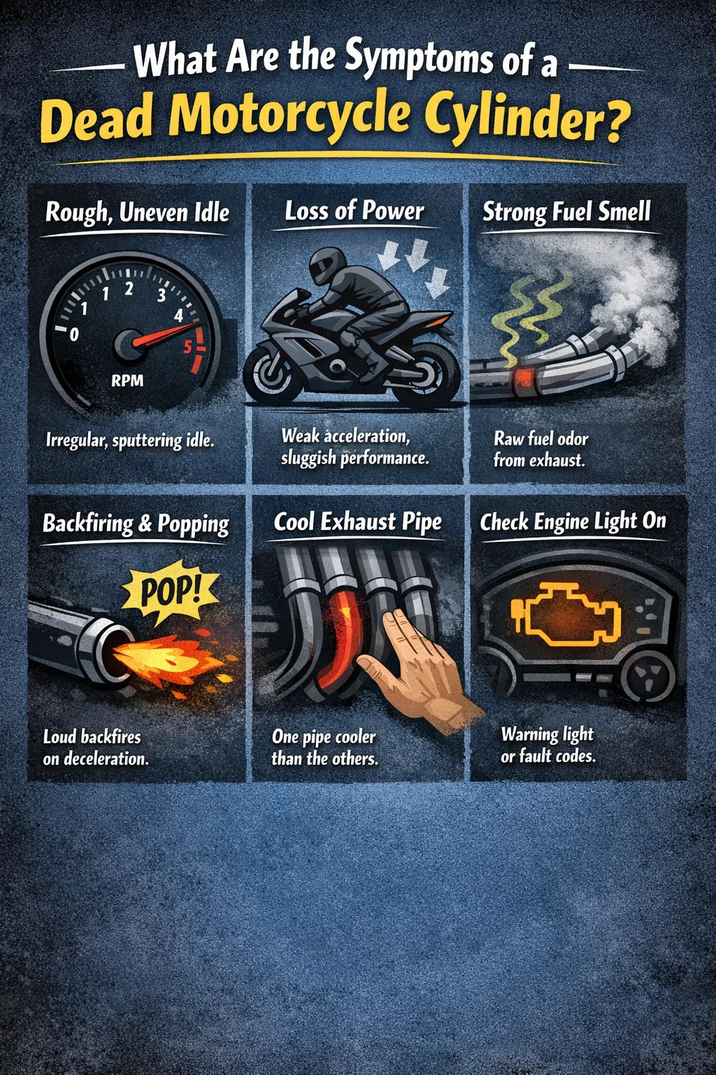 Is éard is sorcóir marbh ann ná sorcóir nach bhfuil ag lámhaigh - rud a chiallaíonn nach bhfuil aon dócháin ar siúl laistigh den seomra sin le linn ghnáth-thimthriall an innill. Ar ghluaisrothar, is ceist thromchúiseach é seo mar go ritheann an chuid is mó de na rothair ar dhá, trí nó ceithre sorcóir, agus má chailleann tú fiú amháin laghdaítear d'aschur cumhachta éifeachtach go mór. Ar chúpla comhthreomhar, tá tú díreach síos go dtí toilleadh 50%. Ar sportbike ceithre-sorcóir, caillfidh tú 25% de do chumhacht agus beidh an t-inneall ag rith le carachtar an-gharbh, míchothrom a bhraitheann tú tríd an chassis iomlán.
