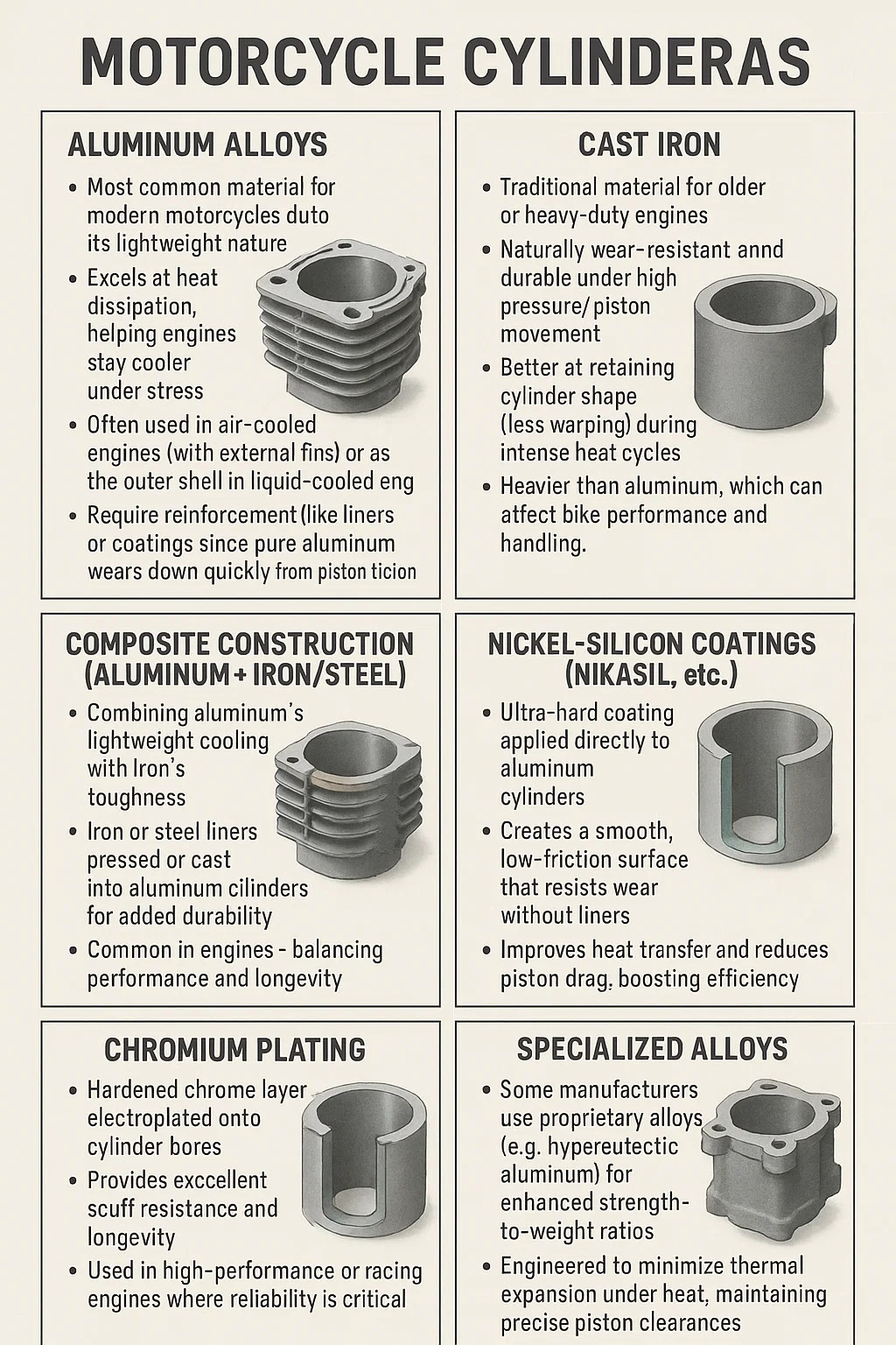 Sorcóirí gluaisrothar a dhéantar go príomha as miotail a roghnaíodh le haghaidh neart, caoinfhulaingt teasa agus marthanacht. Seo miondealú mionsonraithe ar ábhair choitianta agus ar a saintréithe: