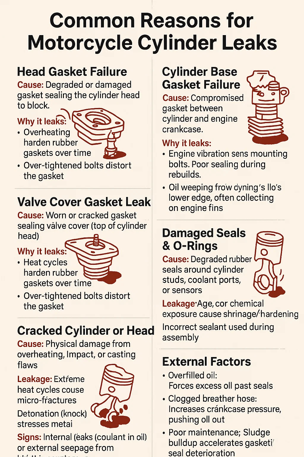 Comharthaí: Meascadh ola/cuasaithe, deatach bán sceite, nó púscadh sreabhán idir an ceann agus an bloc.